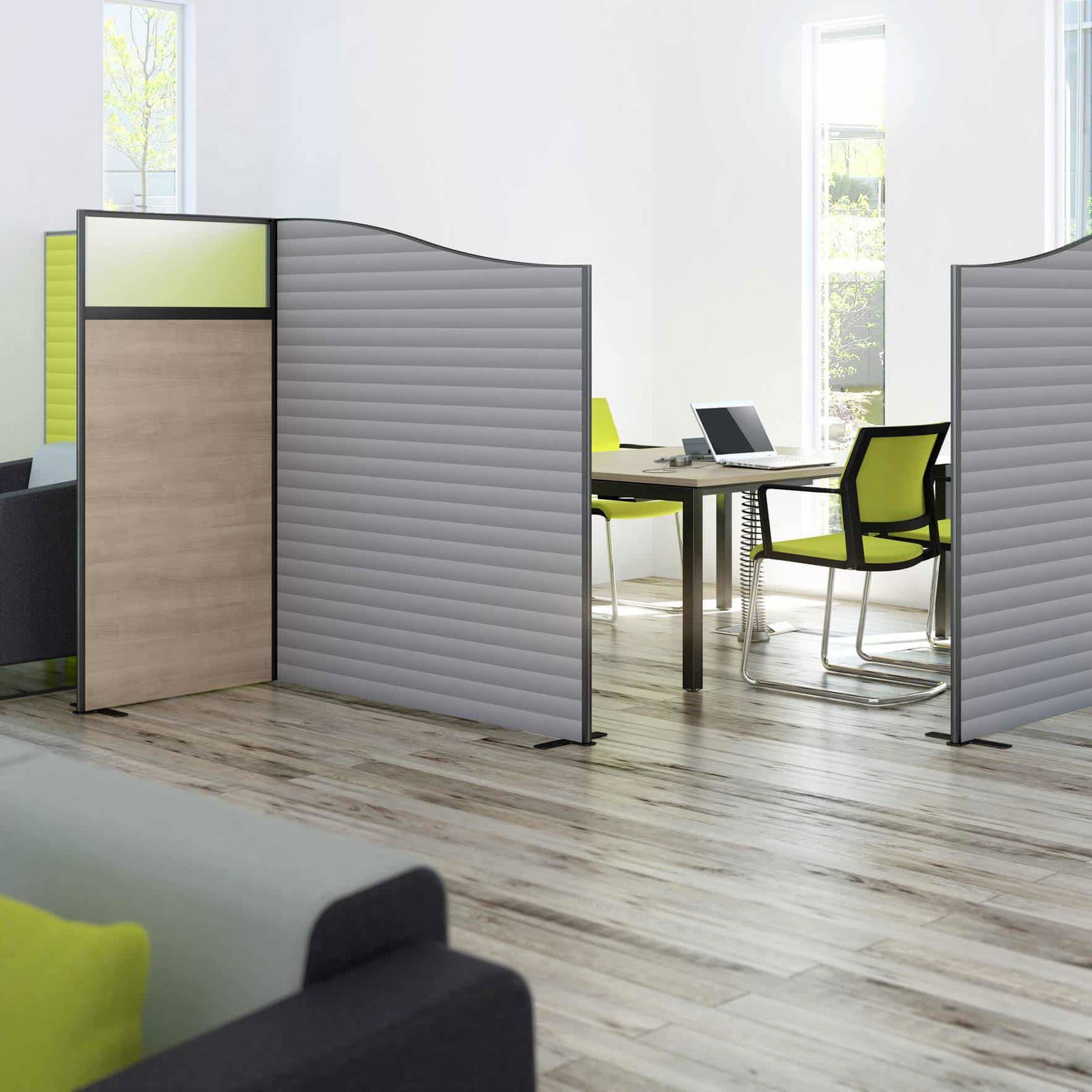 Our comprehensive collection of Floor Standing Screens offers flexible privacy and sound management, making them indispensable for evolving commercial office design. Planscape simplifies the process of integrating these movable, stable partitions to instantly delineate zones for focused work, impromptu meetings, or socially distanced layouts. Utilize these durable and stylish screens as key modern workplace solutions to enhance flexibility, comfort, and acoustic performance within your space.