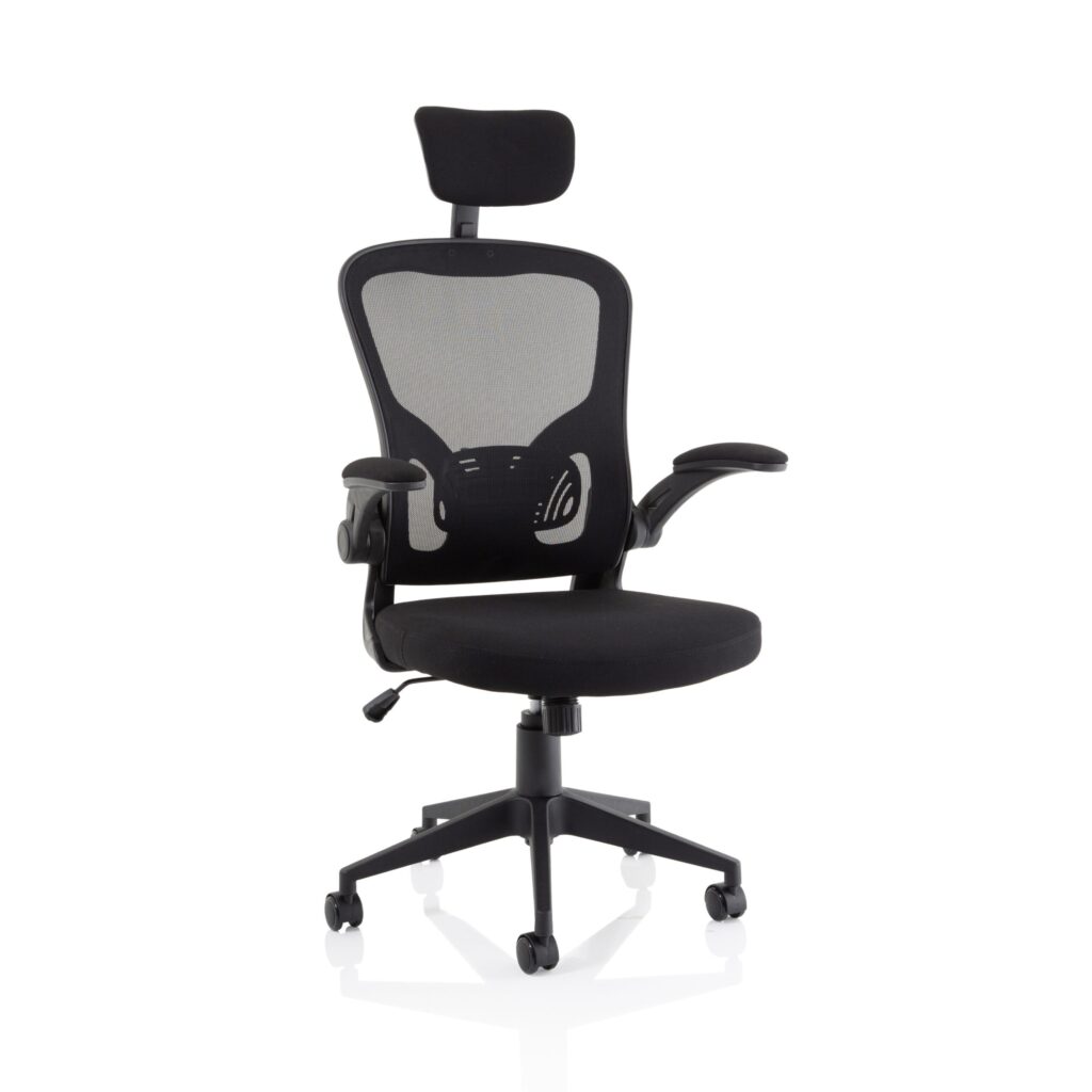Breathable, adjustable, and ready for work. The Ace Executive Mesh Chair With Folding Arms delivers ergonomic support with a mesh back, a headrest, height-adjustable arms (removable), and tilt controls for personalised comfort through long days at the desk. Self-assembly keeps installation quick, and it slots neatly into Executive Chairs or broader office seating setups.