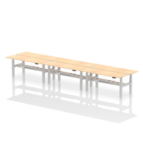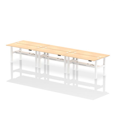 The Air Back-to-Back Slimline Height Adjustable Bench Desk is a six-seat workstation designed for teams who want a tidy, flexible, and highly collaborative space. The standout benefit is ergonomic adaptability combined with built-in connectivity, helping you create an efficient shared desk area with minimal clutter.