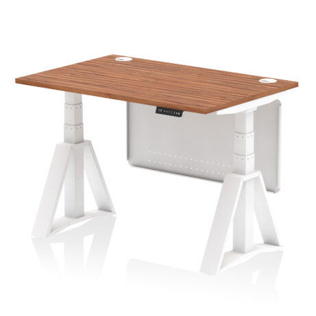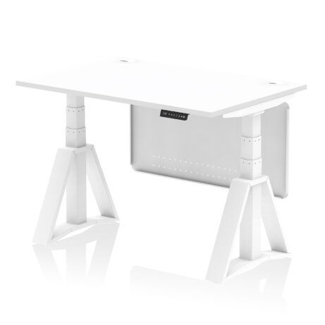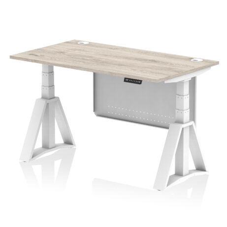 The Air Height Adjustable Desk with Cable Ports, Steel Modesty Panel and Piste Feet is a versatile, ergonomic solution for modern offices. Perfect for teams and individuals who want to reduce sedentary time and boost focus, its sit-stand design supports healthier work routines while keeping the workspace tidy and efficient.