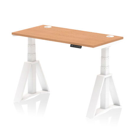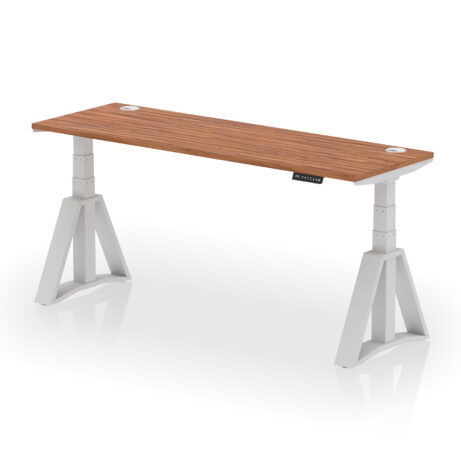 The Air Height Adjustable Slimline Desk With Cable Ports With Piste Foot is a purpose-built sit-stand desking solution perfect for teams aiming to reduce sedentary time and create more productive, ergonomic workspaces. With four width options, three frame styles and six finishes, this desk adapts to different office layouts and aesthetics while delivering a stable, visually clean profile thanks to the Piste feet.