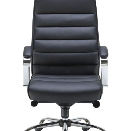 Ares Executive Chair combines executive styling with practical comfort. A 5-star chrome base with castors delivers smooth mobility, while a lock tilt mechanism and adjustable tilt tension let you tailor support to your task. The generously padded faux leather (PU) upholstery, along with fixed chrome arms and stitching detail, offers a professional, durable seating solution for focused work. Contact us for assistance or more information.