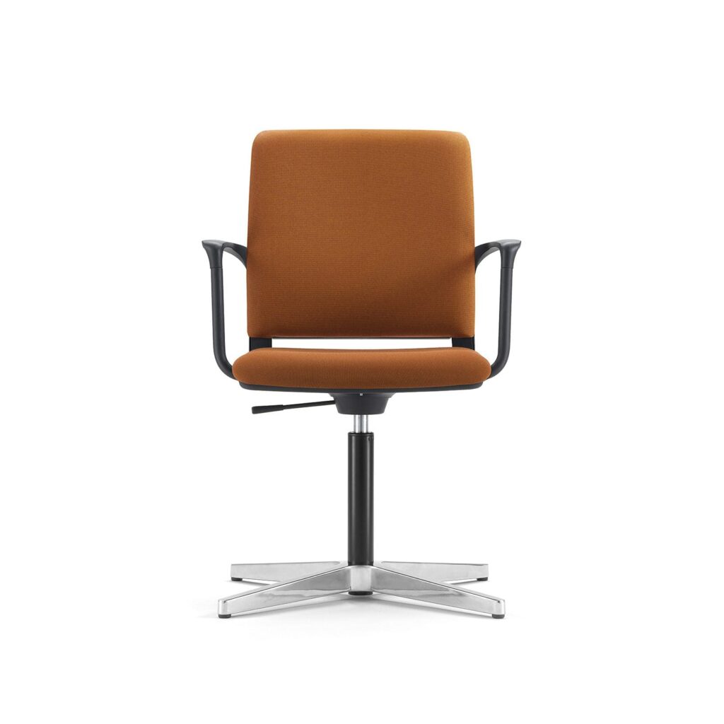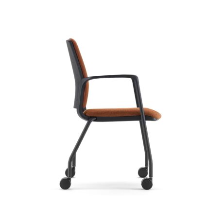 Complete family of meeting chairs with 5 frame options including stacking 4-legged & cantilever plus wheeled versions for movability. All have an upholstered seat but choose between an upholstered or mesh back for preferred aesthetics with no cost difference.