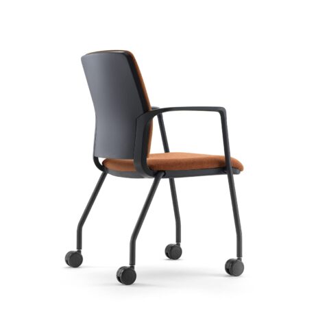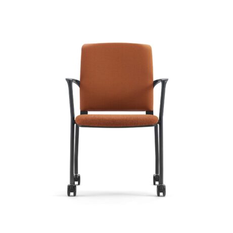 Complete family of meeting chairs with 5 frame options including stacking 4-legged & cantilever plus wheeled versions for movability. All have an upholstered seat but choose between an upholstered or mesh back for preferred aesthetics with no cost difference.