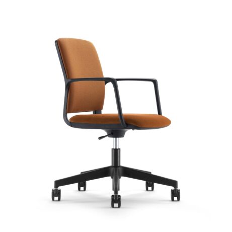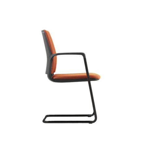 Complete family of meeting chairs with 5 frame options including stacking 4-legged & cantilever plus wheeled versions for movability. All have an upholstered seat but choose between an upholstered or mesh back for preferred aesthetics with no cost difference.