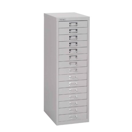 Maximise organised storage with the Bisley 15 Drawer Home 39 Series Steel Multi-Drawer. This tall, lockable cabinet provides 15 drawers as standard for quick access to paperwork, tools and small parts, all within a compact 290 × 420 × 870 mm footprint. Built for durability with anti-tilt protection, it’s ideal for busy offices and home workspaces. Contact us for assistance or more information.