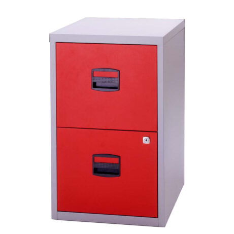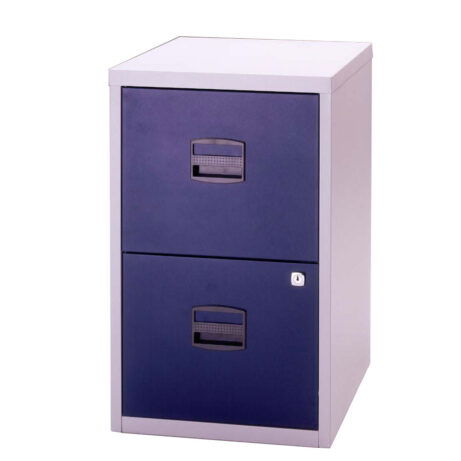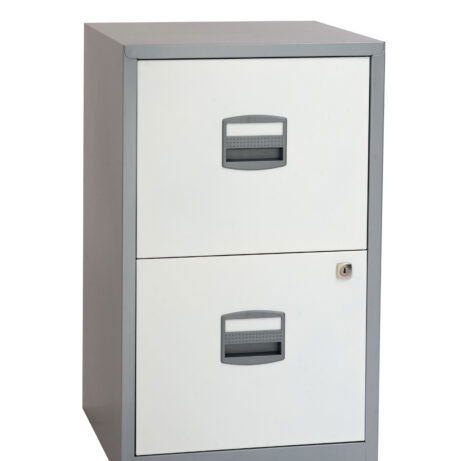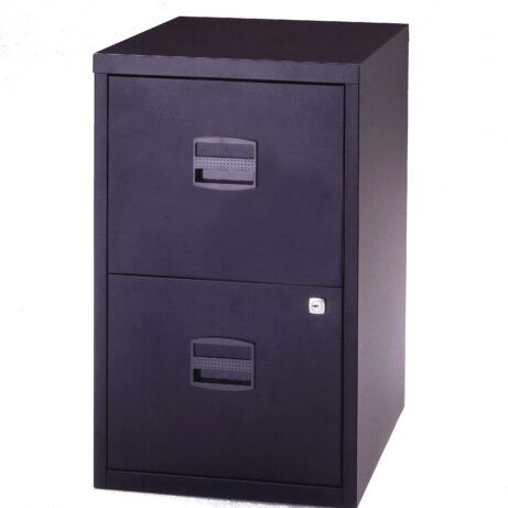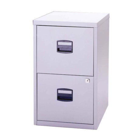 The Bisley 2 Drawer A4 Homefiler is a compact, secure home-office filer with two drawers, compatible with A4 suspension files and foolscap paper. It includes 1 lock with 2 keys, a moulded plastic centre pull handle and a fully welded carcass for strength and a clean profile.