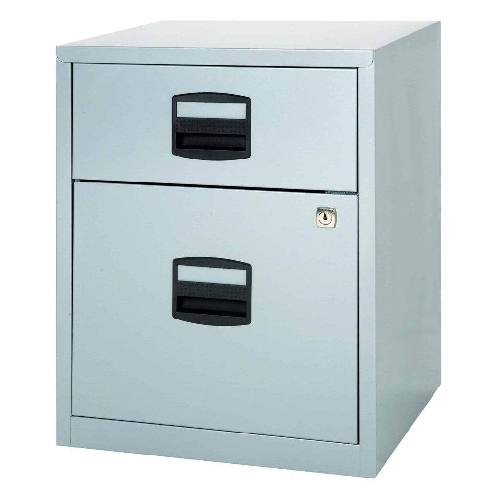 Compact, secure two-drawer solution for home offices, the Bisley 2 Drawer A4 Mobile Home Filer stores A4 suspension files with ease. Its fully welded carcass offers strength, while a master lock with 200 differs keeps documents secure. British Standards-compliant and backed by a minimum five-year guarantee, it’s built to last in busy home workspaces. Dimensions: 413 x 400 x 529-529 mm. Steel Storage range.
