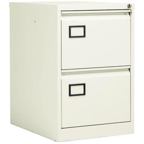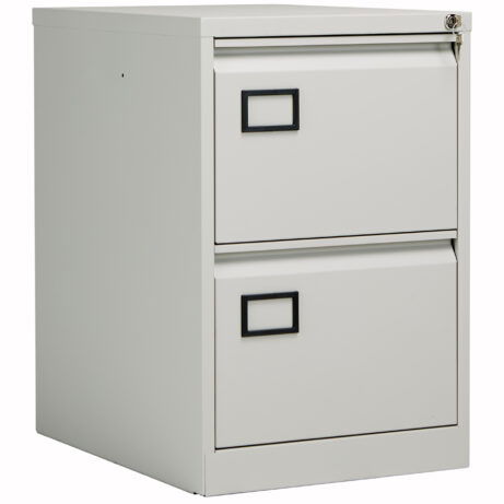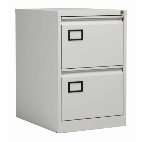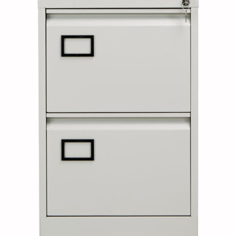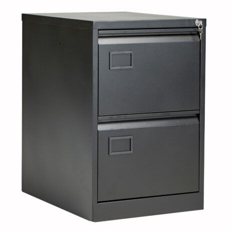 Secure two-drawer filing in a compact steel cabinet that fits neatly in modern offices. With central locking, anti-tilt safety and two deep drawers, it keeps important documents protected and organised. Each drawer supports 35kg of suspension files, and the sturdy steel construction promises lasting durability. Dimensions: 470 x 622 x 711 mm.