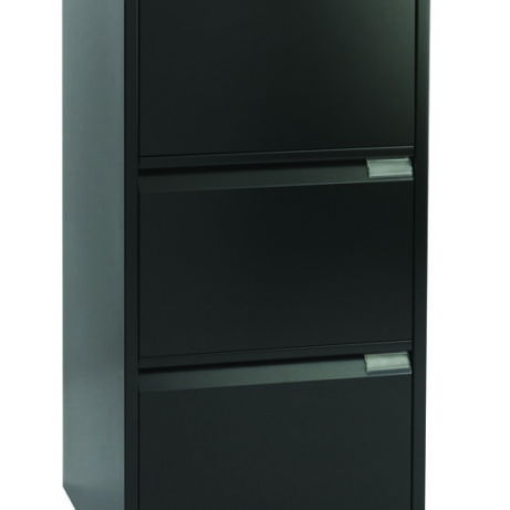 Steadfast 3-drawer steel filing cabinet designed for suspension filing, with a fully welded carcass and double skin drawer fronts for lasting strength. Three drawers, a Mastered lock with 200 differs, and dimensions of 470 x 622 x 1016 mm. Minimum five-year guarantee makes it a durable choice for secure, everyday filing. Explore the Steel Storage category.