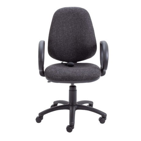 With a ‘permanent contact back’ mechanism, the chair maintains continuous spinal support as you move, helping you stay comfortable during extended sit-to-stand cycles. The curved foam back delivers full contact and comfort for up to 8 hours and supports users up to 115 kg, while a deep, cushioned seat and durable, 100% man-made fabric provide a practical, easy-to-clean surface.
