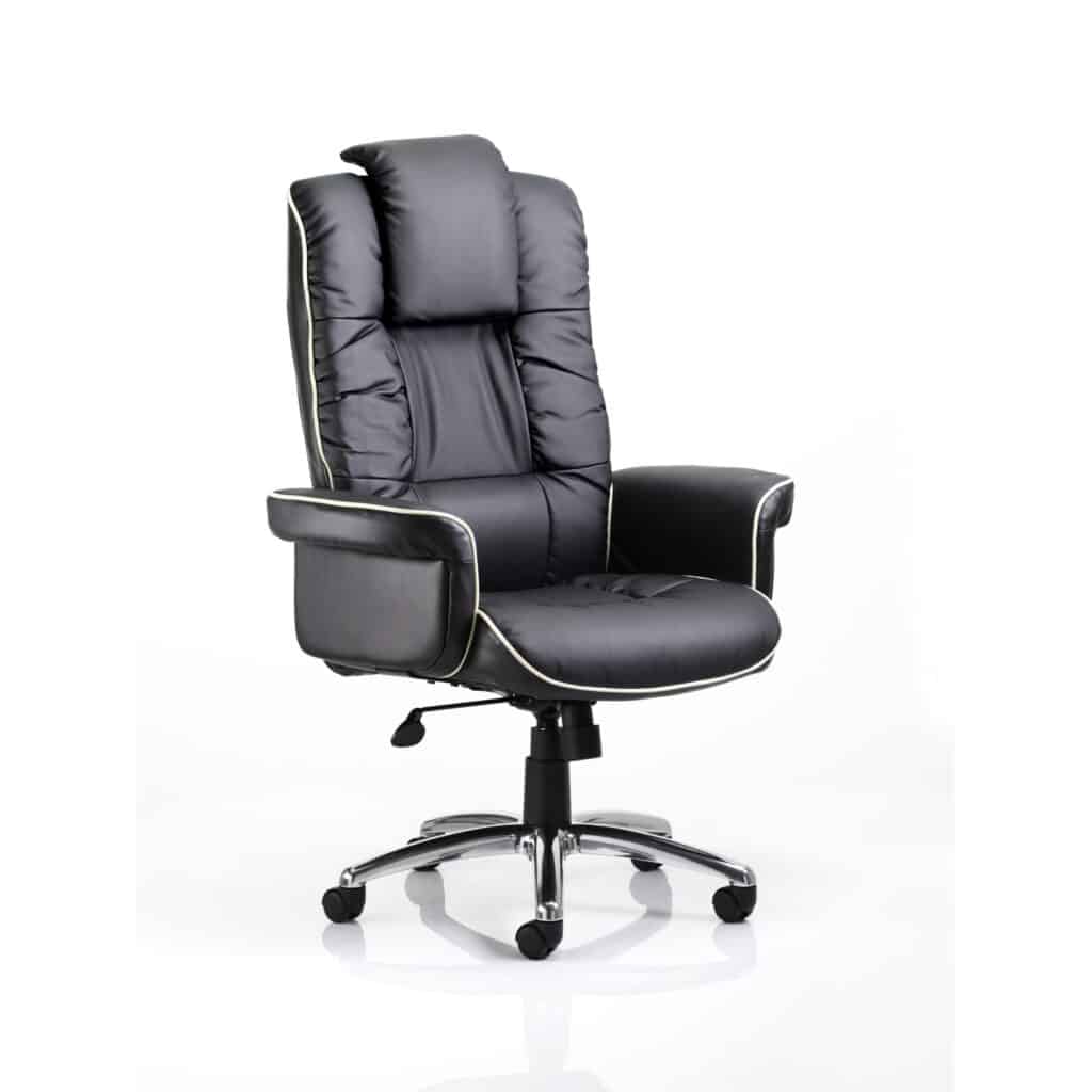 Chelsea High Back Leather Executive Chair blends executive style with all-day comfort. A tall back, cushioned arms, and a robust chrome base support long hours at the desk, while leather upholstery adds a professional finish. Perfect for private offices or open-plan spaces within our Executive Chairs and Seating ranges.