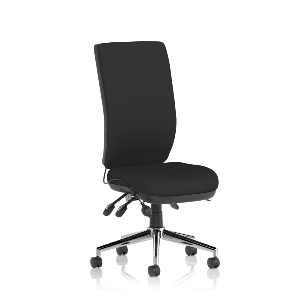 High-back support for lasting focus at the desk, packaged in a professional, low-maintenance chair. The Chiro sits on a sturdy five-star chrome base with smooth-rolling casters and a clean silhouette that fits modern workspaces. A dependable choice within our Task & Operator Chairs range for everyday office use.