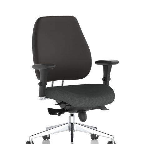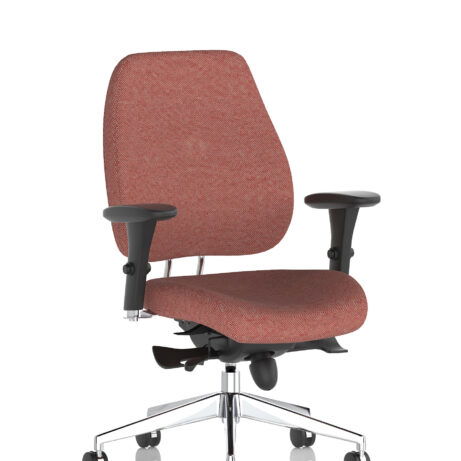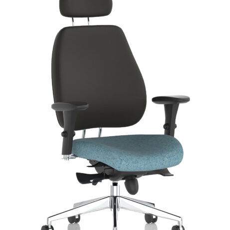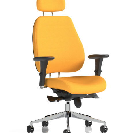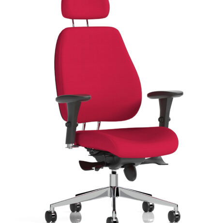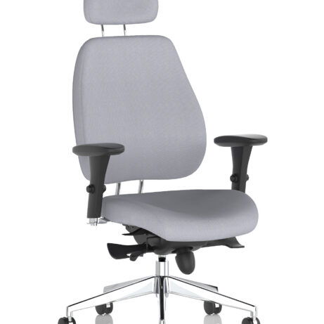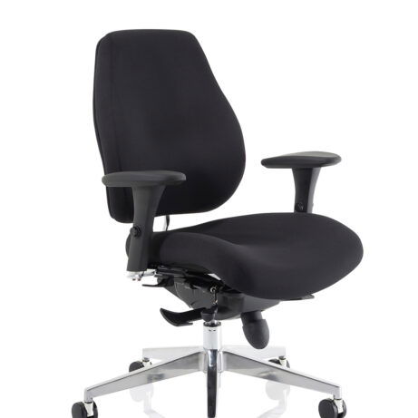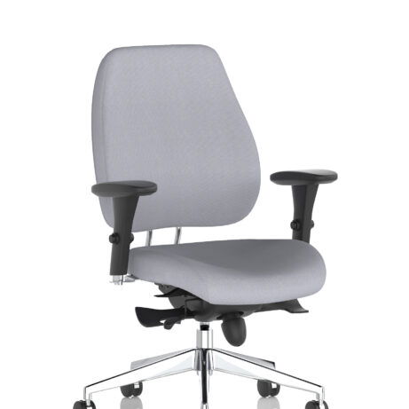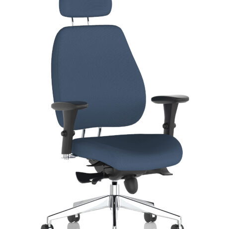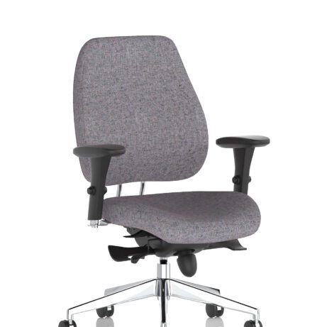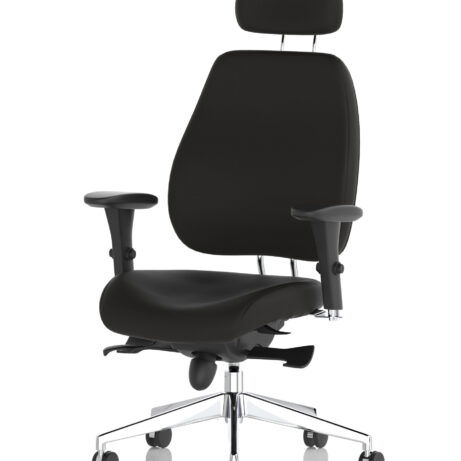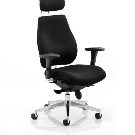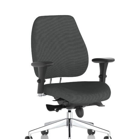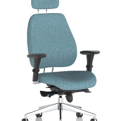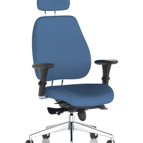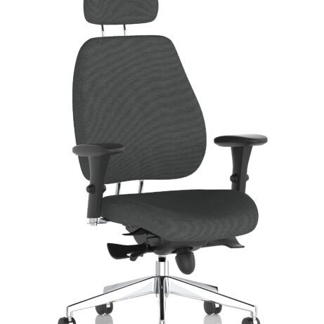 High-back ergonomic support with flexible adjustability—the Chiro Plus Chair offers gas-height adjustment, tilt with adjustable tension, and a synchro tilt for comfortable movement. The arms are adjustable and removable to suit your desk setup, while fabric upholstery and a sturdy base ensure all-day comfort and mobility. Self-assembly means quick setup. Explore our Fabric Chairs and Bespoke Products ranges for complementary solutions.