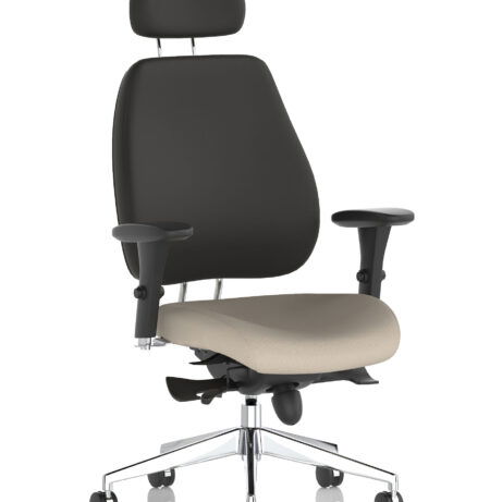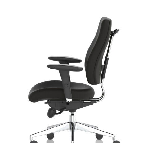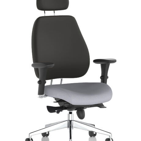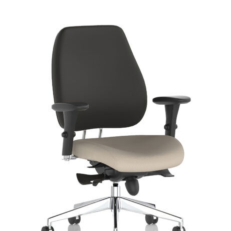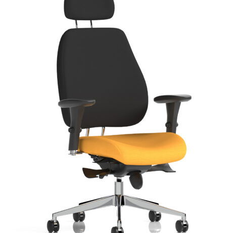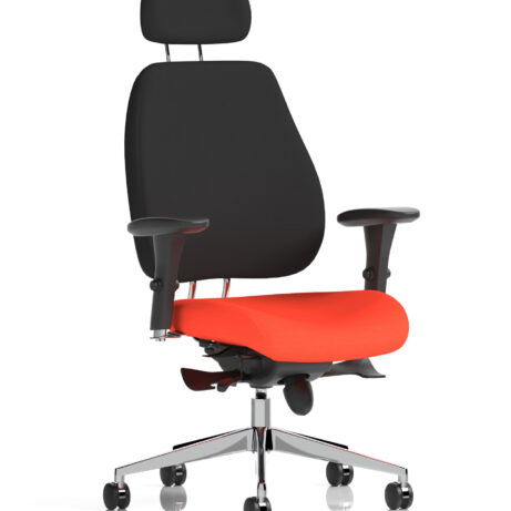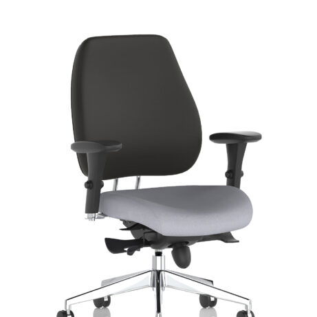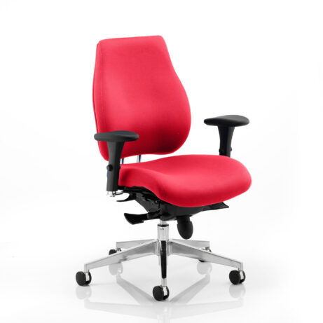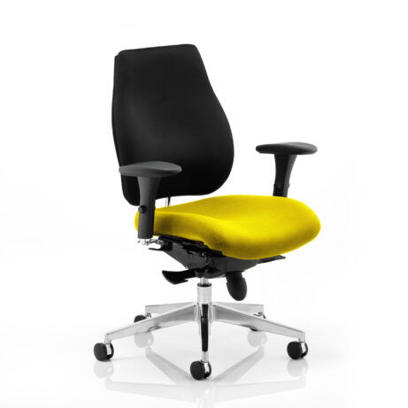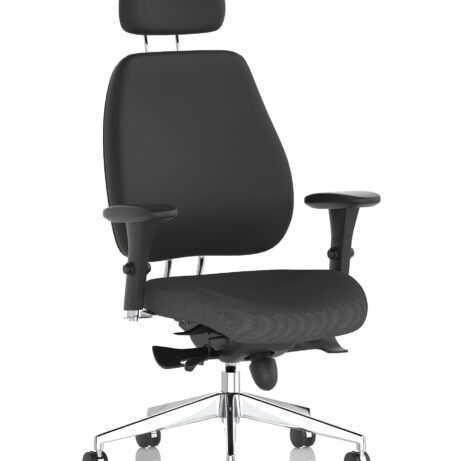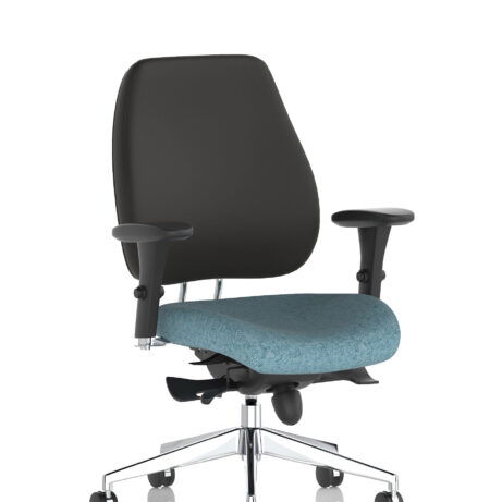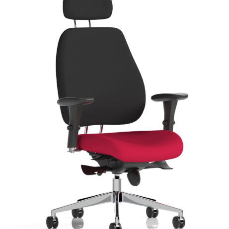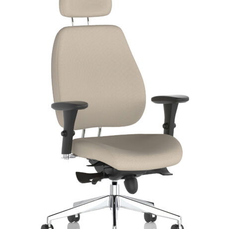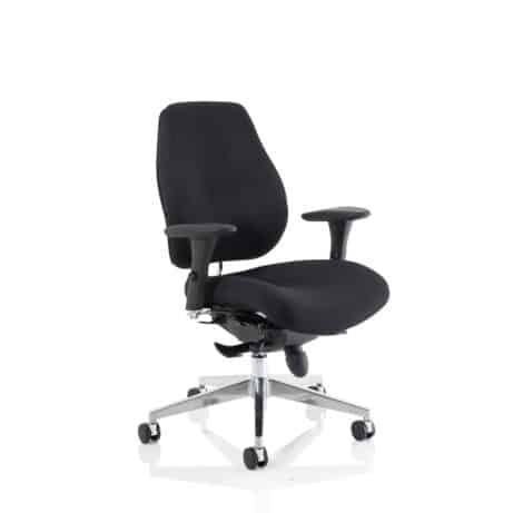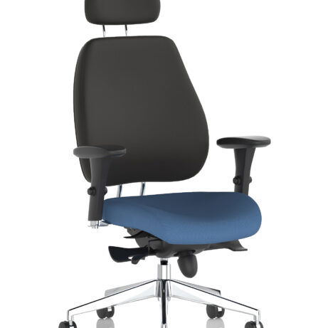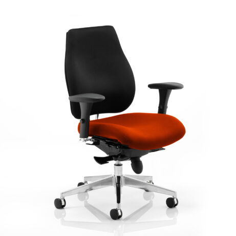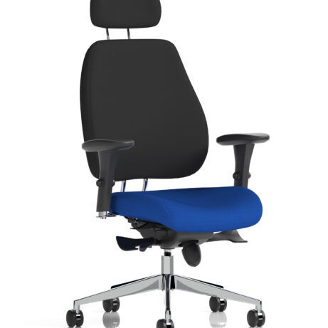 High-back ergonomic support with flexible adjustability—the Chiro Plus Chair offers gas-height adjustment, tilt with adjustable tension, and a synchro tilt for comfortable movement. The arms are adjustable and removable to suit your desk setup, while fabric upholstery and a sturdy base ensure all-day comfort and mobility. Self-assembly means quick setup. Explore our Fabric Chairs and Bespoke Products ranges for complementary solutions.