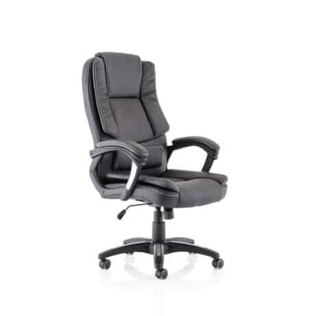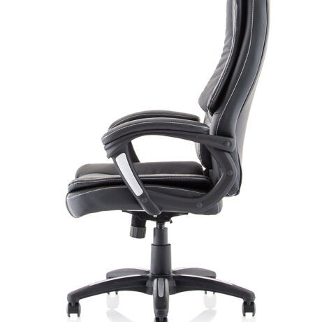 The Dakota High Back Black Leather Executive Office Chair with Arms is designed for leaders who demand comfort, style and lasting support throughout long workdays. Perfect for Executive Chairs in modern workspaces, it pairs a premium black leather finish with a sophisticated high-back silhouette and sturdy arms to promote good posture during long meetings and focused tasks.