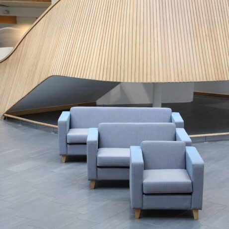 Dorchester Armchair combines a compact footprint with full upholstery for welcoming reception seating. Use solo or with the matching two- and three-seat sofas to craft a cohesive, modern look in reception and breakout spaces. Key specs: seat width 540mm, seat height 440mm, overall 785mm W x 560mm D x 830mm H. Lead time 2 weeks; standard black oak legs, chrome legs available.