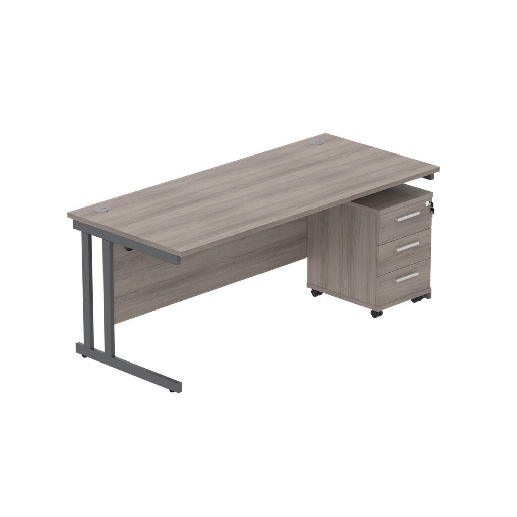 Double Upright Rectangular Desk + 3 Drawer Mobile Under Desk Pedestal (FSC)