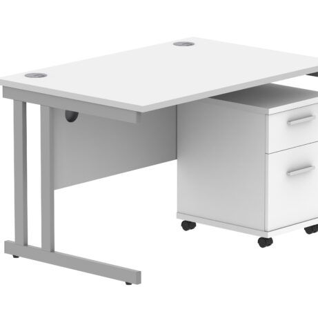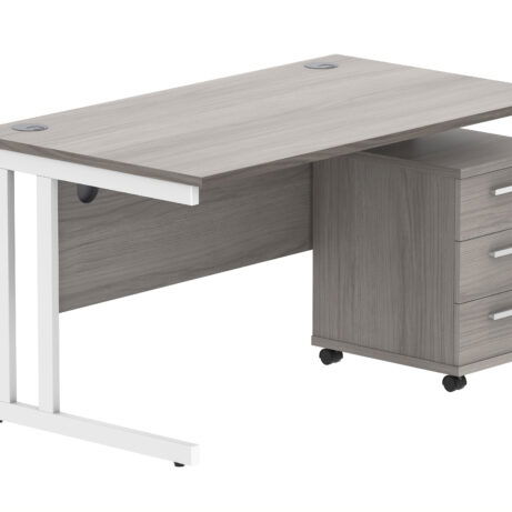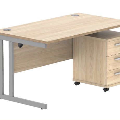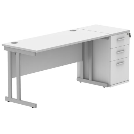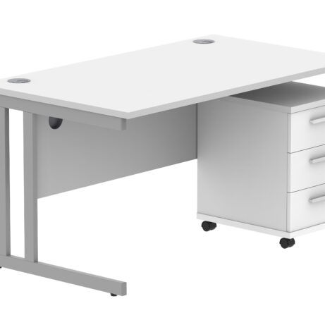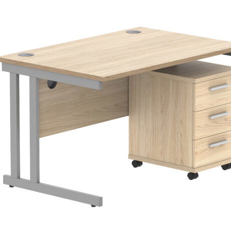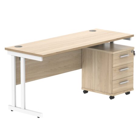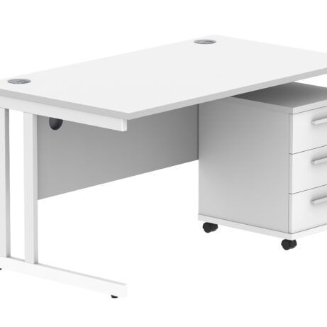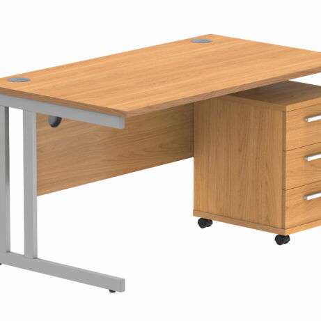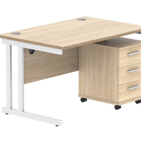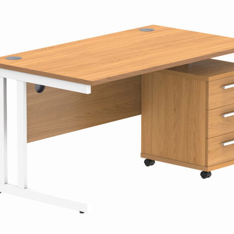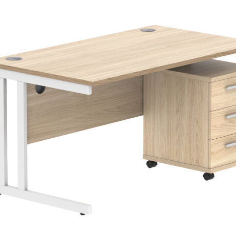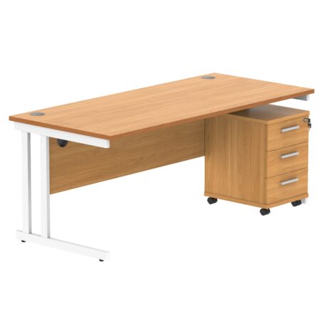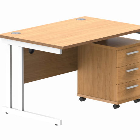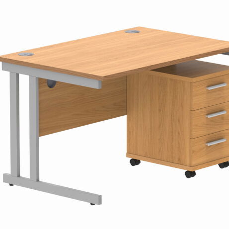 Double Upright Rectangular Desk + 3 Drawer Mobile Under Desk Pedestal (FSC)