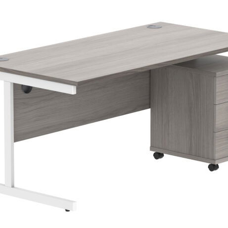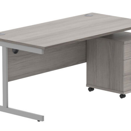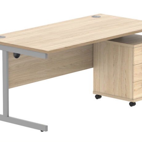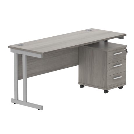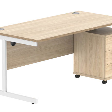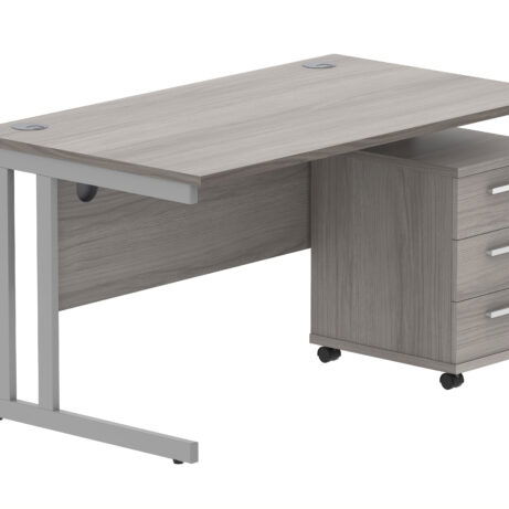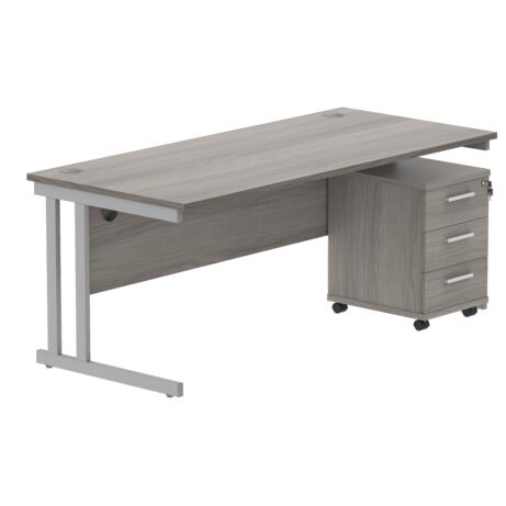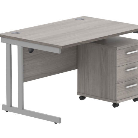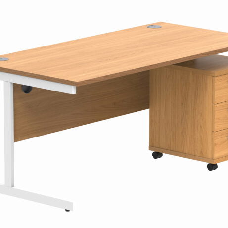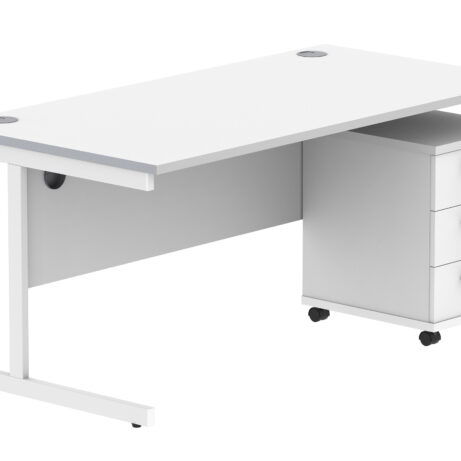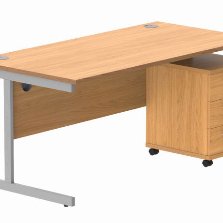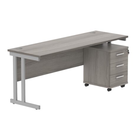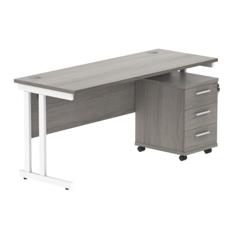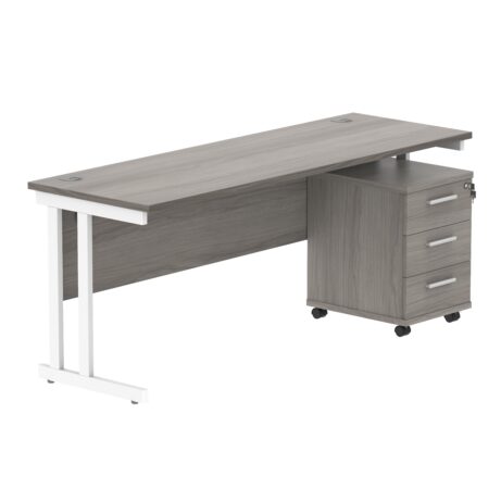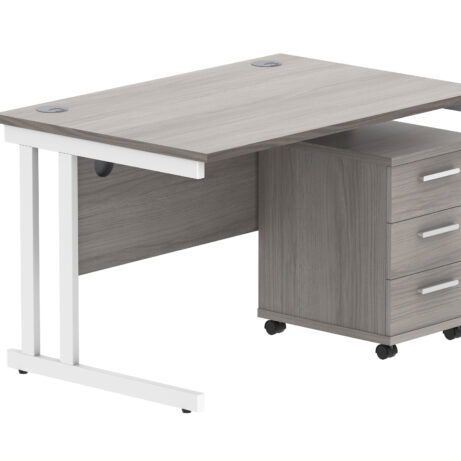 Double Upright Rectangular Desk + 3 Drawer Mobile Under Desk Pedestal (FSC)