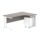 Stable radial desk with built-in storage combines a double upright steel frame with an under-desk pedestal containing three drawers, keeping the workspace tidy and efficient. Finished with a wooden top and wooden back panel, it includes adjustable feet for level surfaces. Dimensions: 1800x1200x730-730. Perfect for office desking in individual desks & workstations.