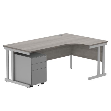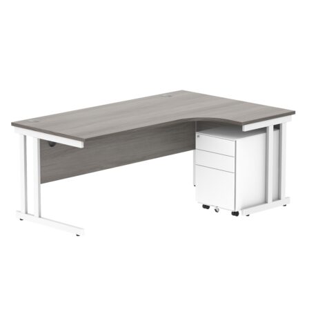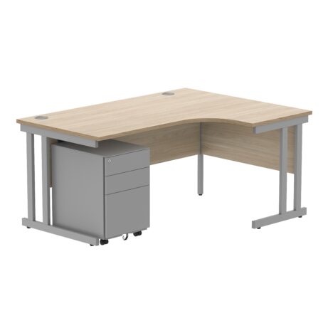 Double Upright Right Hand Radial Desk + Under Desk Steel Pedestal 3 Drawers (FSC)