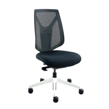 Duce White is a high mesh back stylish task chair with a host of standard features designed to adapt and support the user with ease of use. Standard features include a ratchet back height adjustment, synchronised mechanism with body balance tension system and seat slide with a black mesh back, upholstered seat, white trim on a black nylon base.