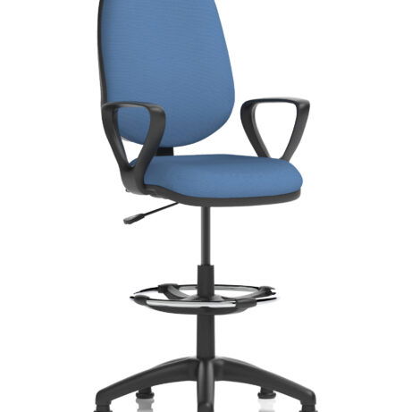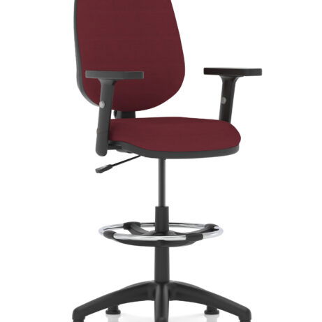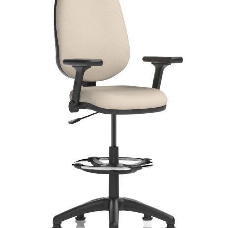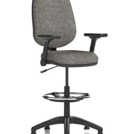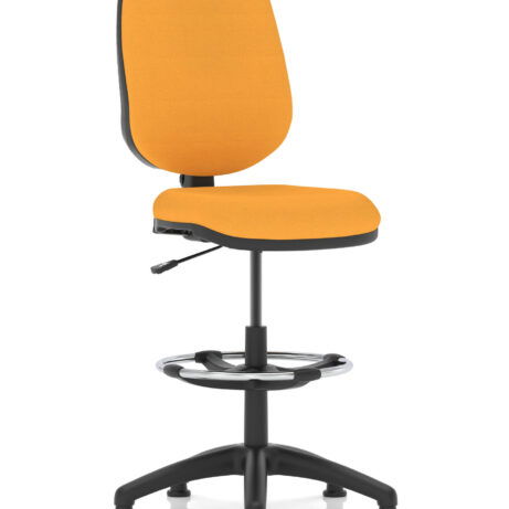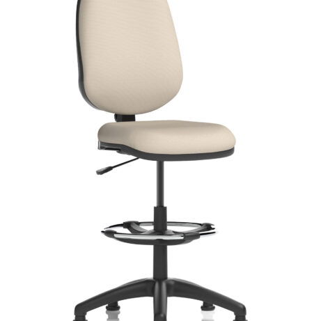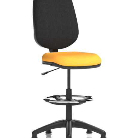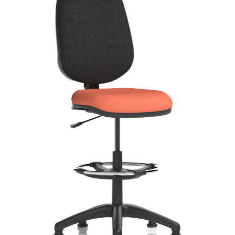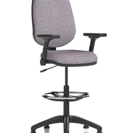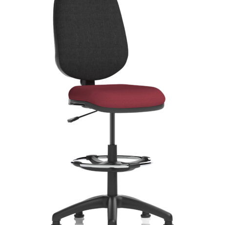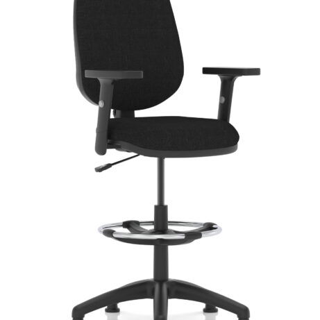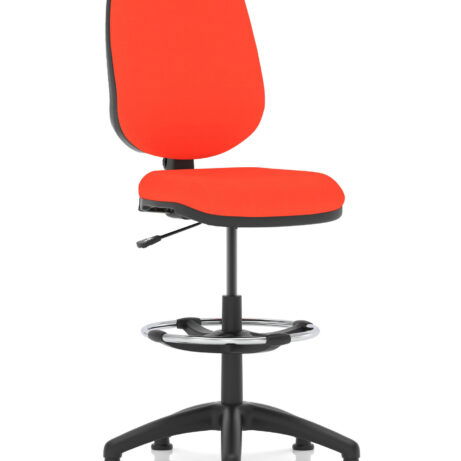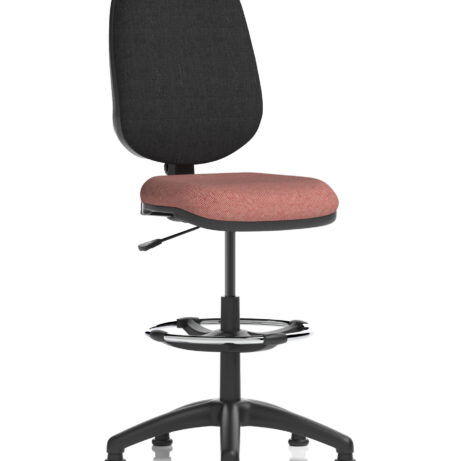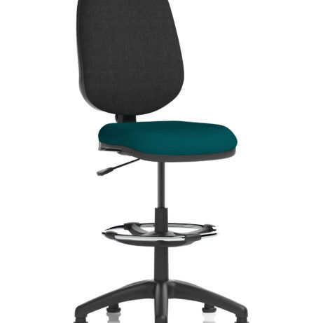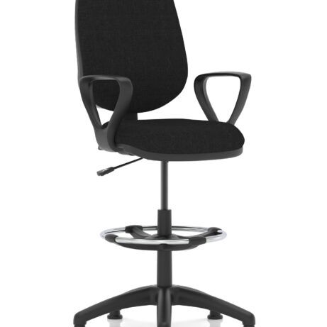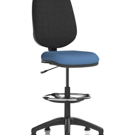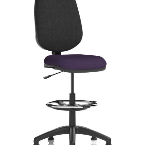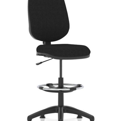 Eclipse Plus I is a medium-back Task Operator Chair with a Hi Rise Draughtsman Kit, featuring gas-height adjustment, a seat-height control and a chrome foot ring for drafting at elevated desks. The fabric-upholstered seat and removable arms support flexible layouts, with self-assembly that keeps installation straightforward. See it in the Task & Operator Chairs section within office seating and alongside our Fabric Chairs range.