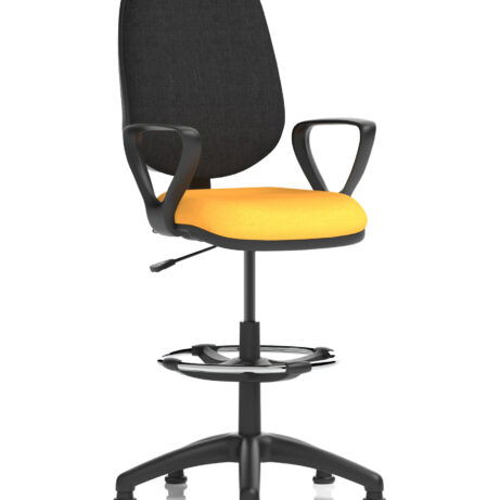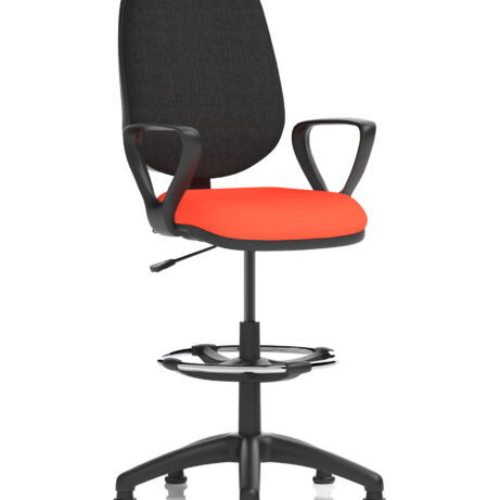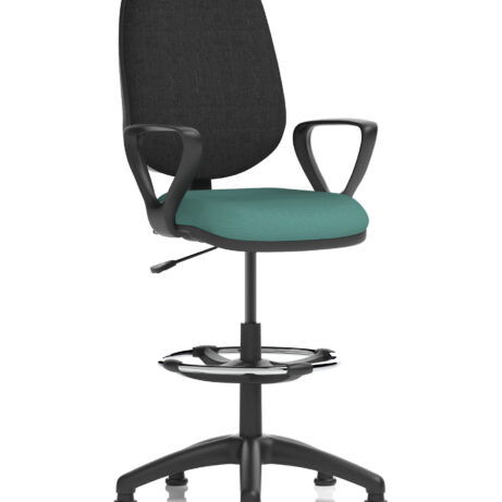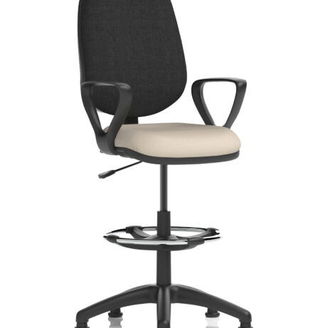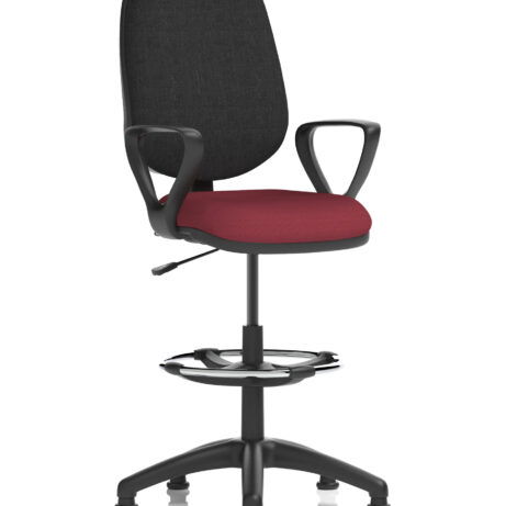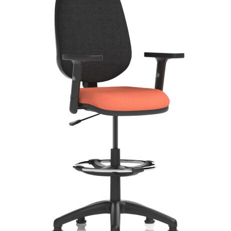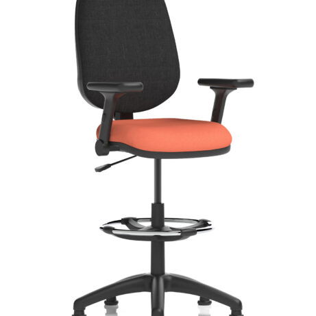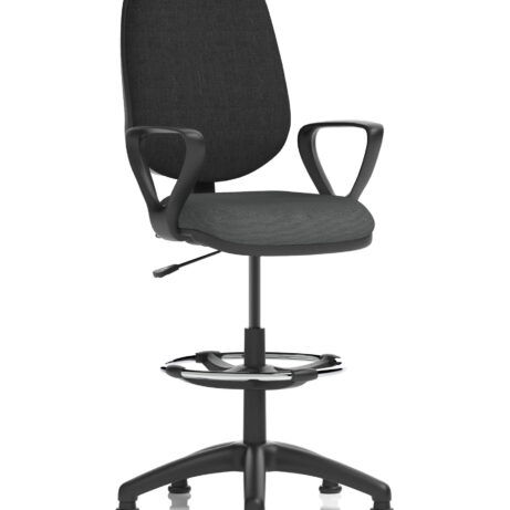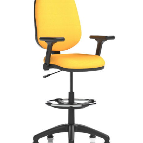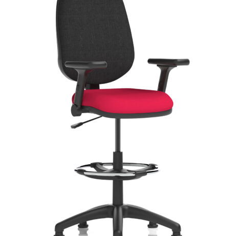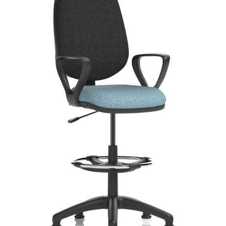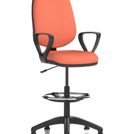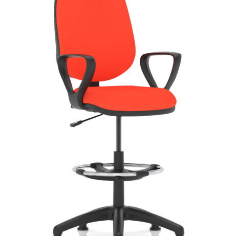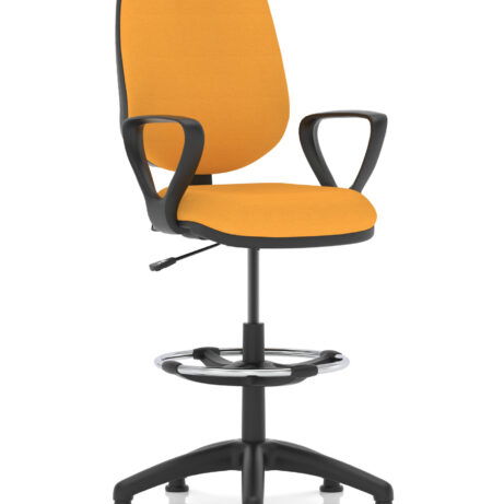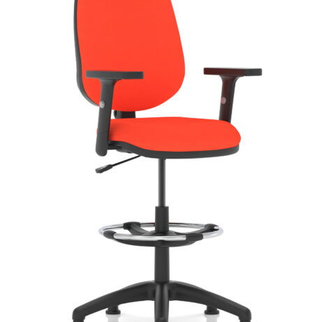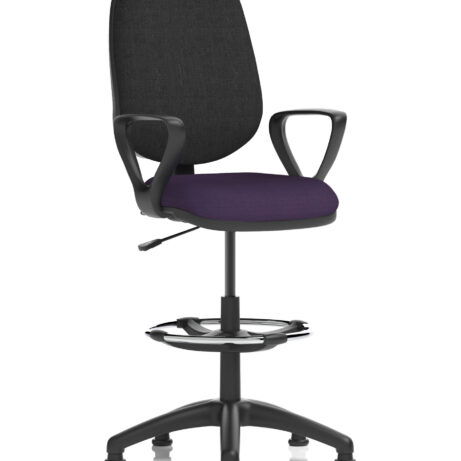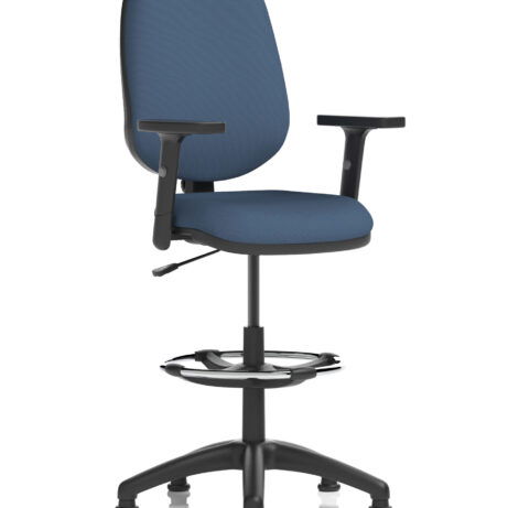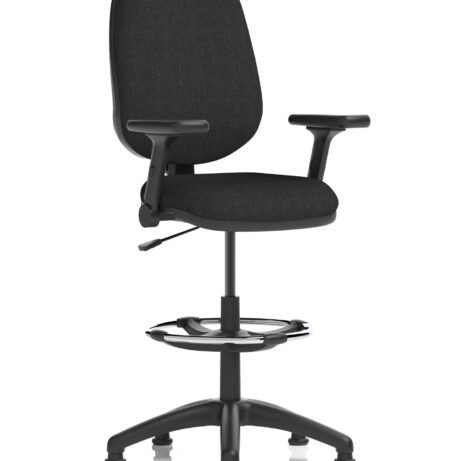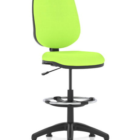 Eclipse Plus I is a medium-back Task Operator Chair with a Hi Rise Draughtsman Kit, featuring gas-height adjustment, a seat-height control and a chrome foot ring for drafting at elevated desks. The fabric-upholstered seat and removable arms support flexible layouts, with self-assembly that keeps installation straightforward. See it in the Task & Operator Chairs section within office seating and alongside our Fabric Chairs range.