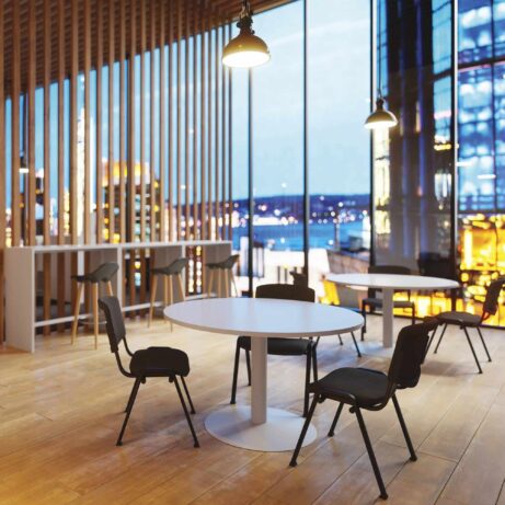 Flexible, durable and tidy Ensemble Round Meeting Tables are ideal for small meetings and conference spaces. Starting with 25 mm Structurex® melamine-coated tops and 2 mm ABS edging, you can pair round or modular tops with cylindrical or trumpet legs to suit your room. Central cable ports and strategic cutouts keep wires neatly managed. Lead time is 3 weeks, and dimensions are in the spec sheet. Meeting / Conference and Tables ranges make them a versatile choice for modern offices. Contact us for assistance or more information.