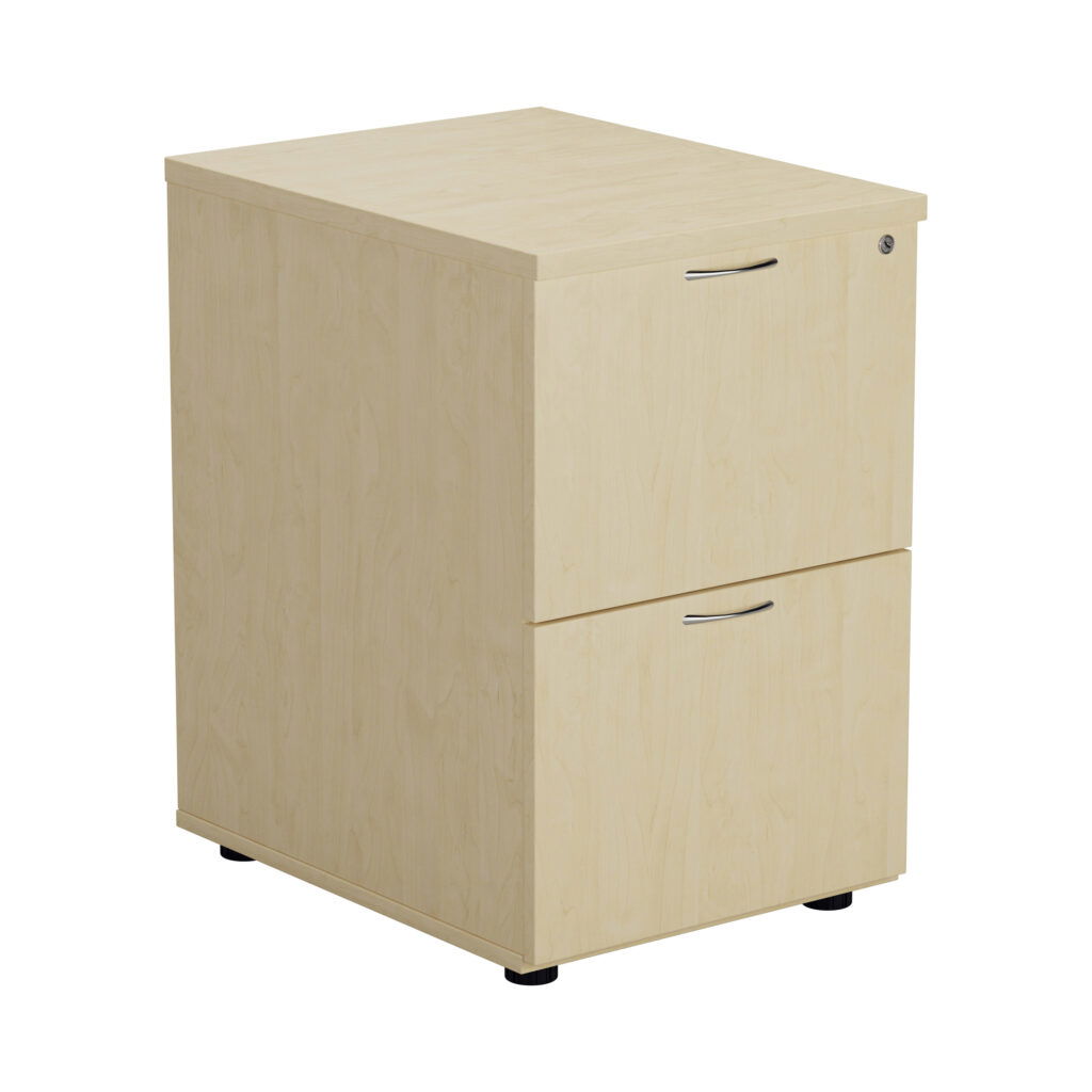 Secure, two-drawer filing with full extension in a robust wooden cabinet. The Essentials Filing Cabinet 2 Drawer keeps confidential documents safe with a lock and two keys, while accommodating both A4 and foolscap suspension files. Enjoy smooth 100% drawer extension on Accurize runners. Dimensions: 464x600x710-710 mm.