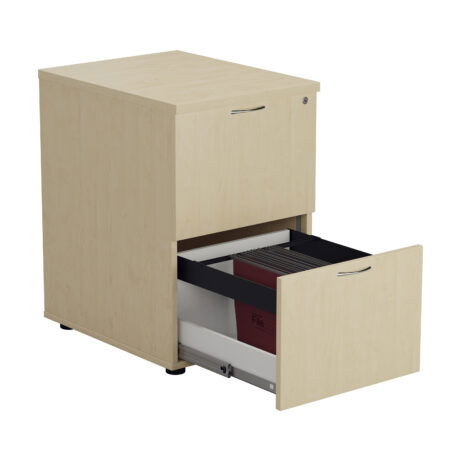 Secure, two-drawer filing with full extension in a robust wooden cabinet. The Essentials Filing Cabinet 2 Drawer keeps confidential documents safe with a lock and two keys, while accommodating both A4 and foolscap suspension files. Enjoy smooth 100% drawer extension on Accurize runners. Dimensions: 464x600x710-710 mm.
