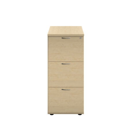 Secure, accessible three-drawer filing cabinet from Planscape’s Essentials range. This lockable unit fits A4 and foolscap suspension files and offers 100% drawer extension on Accurize runners for easy access. With anti-tilt safety and a compact footprint (464 x 600 x 1055 mm), it blends seamlessly with Wooden Storage pieces. Contact us for assistance or more information.