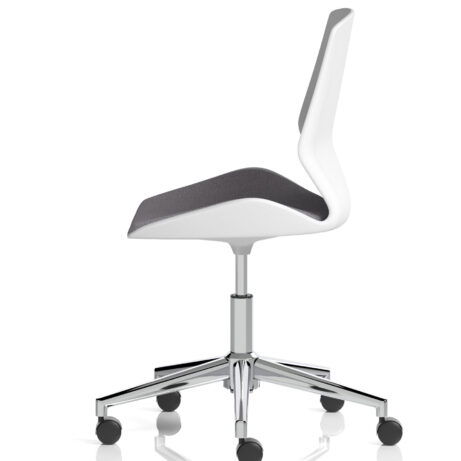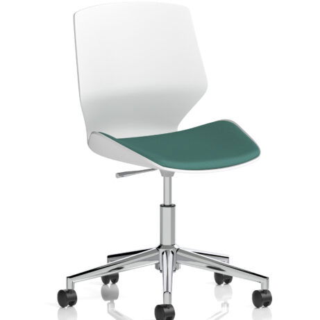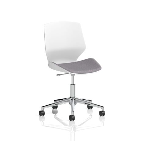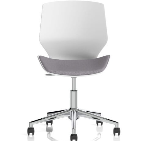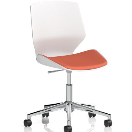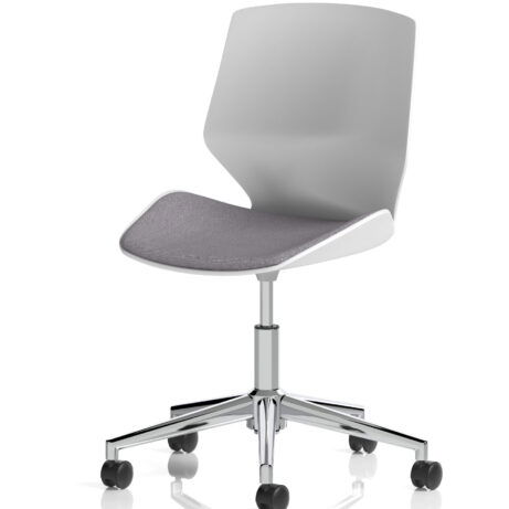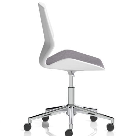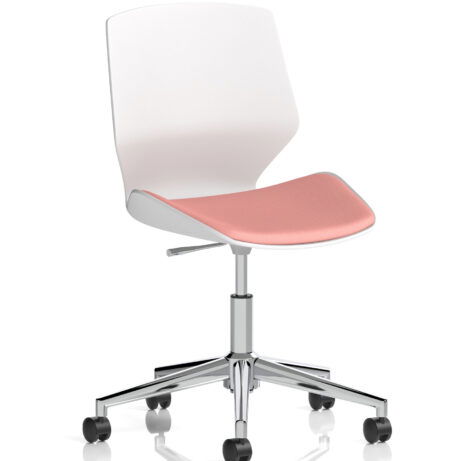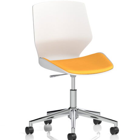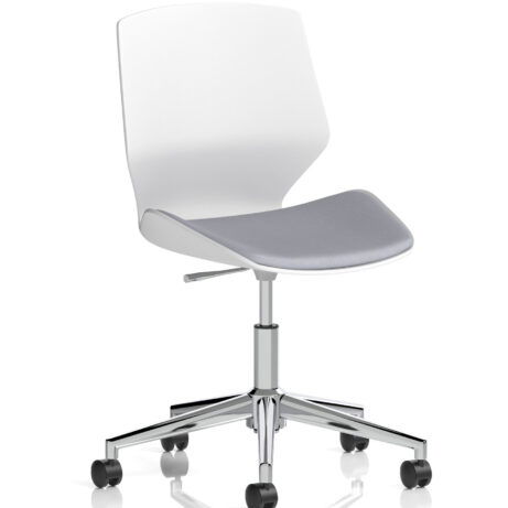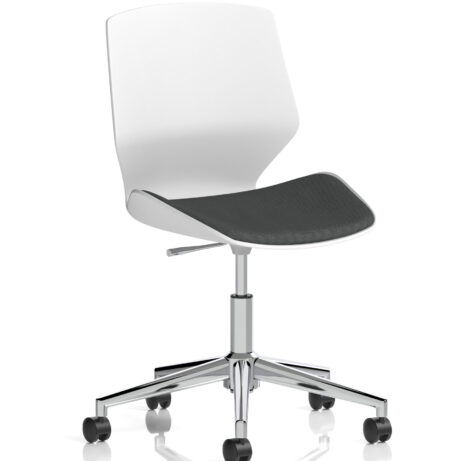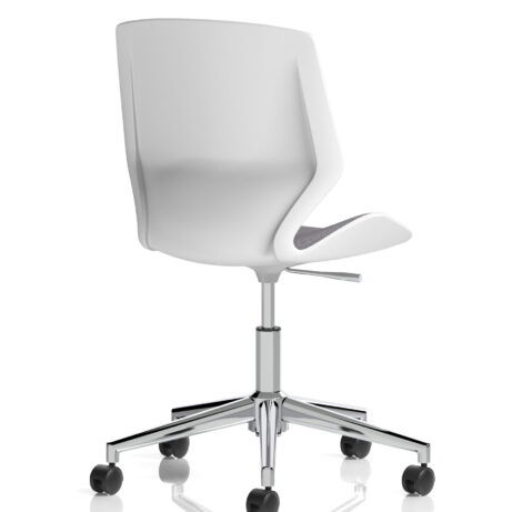 Florence is a compact, professional visitor chair that blends a white frame with a chrome five-star base. The fabric seat offers practical comfort for guests, while gas-height adjustment and easy-rolling casters support flexible use in reception or meeting spaces. Self-assembly keeps setup simple, making it a smart addition to office seating.