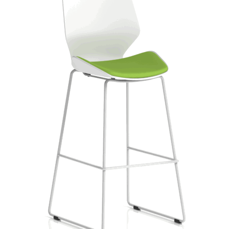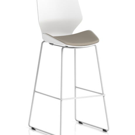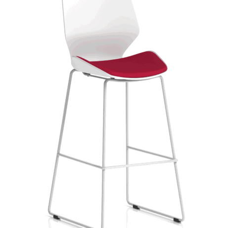 Florence White Frame Fabric Seat High Stool Chair combines a white frame with a fabric seat for a clean, contemporary look at high tables and reception desks. Easy to self-assemble, it delivers a practical, comfortable perch with a slim backrest and integrated footrest, designed for busy, high-traffic spaces.