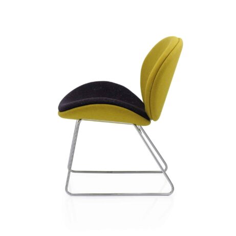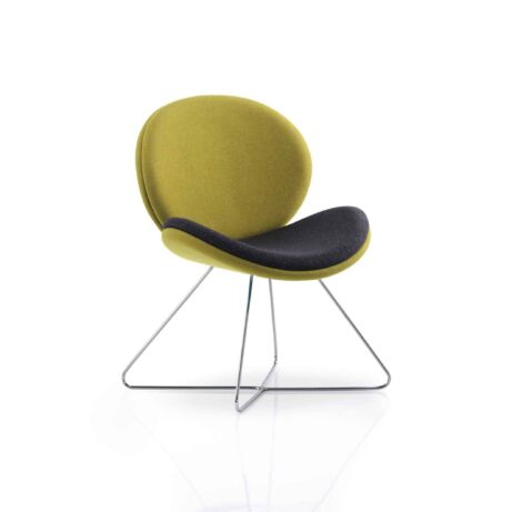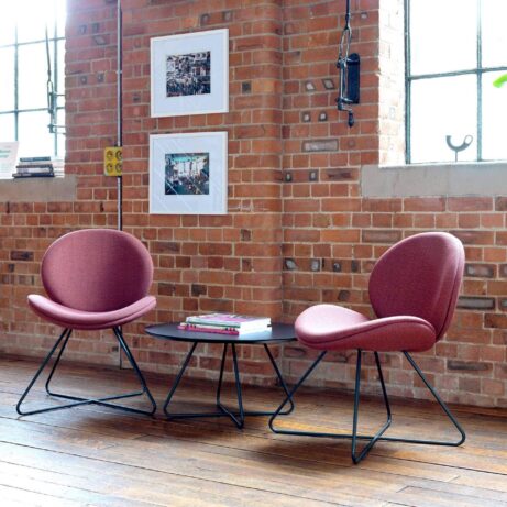 The GIGGLE Chair adds warmth and sculptural presence to reception spaces with fully upholstered comfort. Its inviting curve, compact footprint and adjustable framing make it a versatile seating solution. Pair with pieces from our Armchairs & Sofas range to create cohesive layouts. Lead time: 4 weeks.