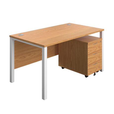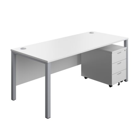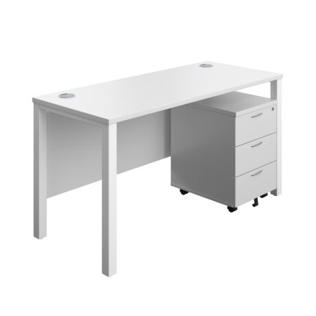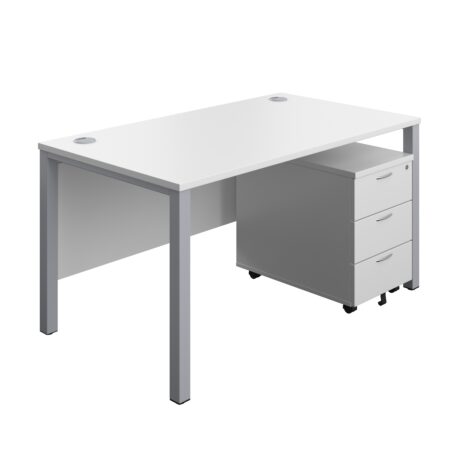 The Goal Post Rectangular Desk + 3 Drawer Mobile Pedestal (FSC) is a contemporary workstation designed for productive teams. Its distinctive goalpost legs offer a stable, open feel and a clean aesthetic, complemented by a tidy modesty panel that helps create a professional front for client-facing spaces. With a generous 1600 x 800 mm work surface, it supports focused work, brainstorming, and documentation side-by-side, while built-in cable ports help keep wires neatly organised and out of sight, reducing clutter and downtime spent chasing cables.