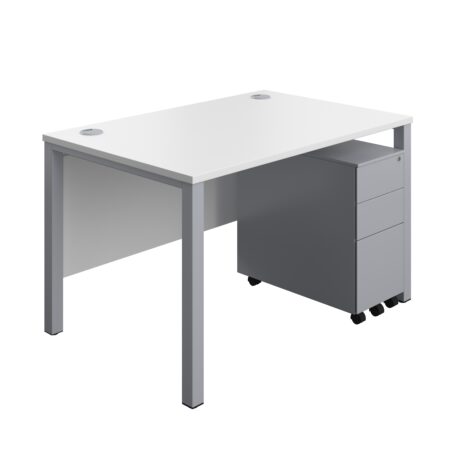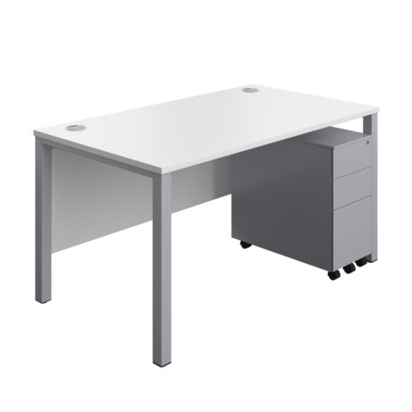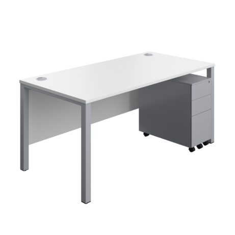 Goal Post Rectangular Desk + 3 Drawer Slimline Steel Pedestal (FSC)
