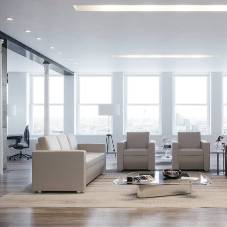 HURRICANE – Faux Leather delivers durable, executive seating for reception and breakout spaces. Built on a solid hardwood frame with interwoven webbing, it comes as an Armchair, 2-Seater and 3-Seater, all fully upholstered and finished with chrome feet. All pieces share the same depth (810mm) and height (740mm) with a 490mm seat height, and widths from 860mm to 1980mm to fit your space. Lead time is 3-4 weeks.