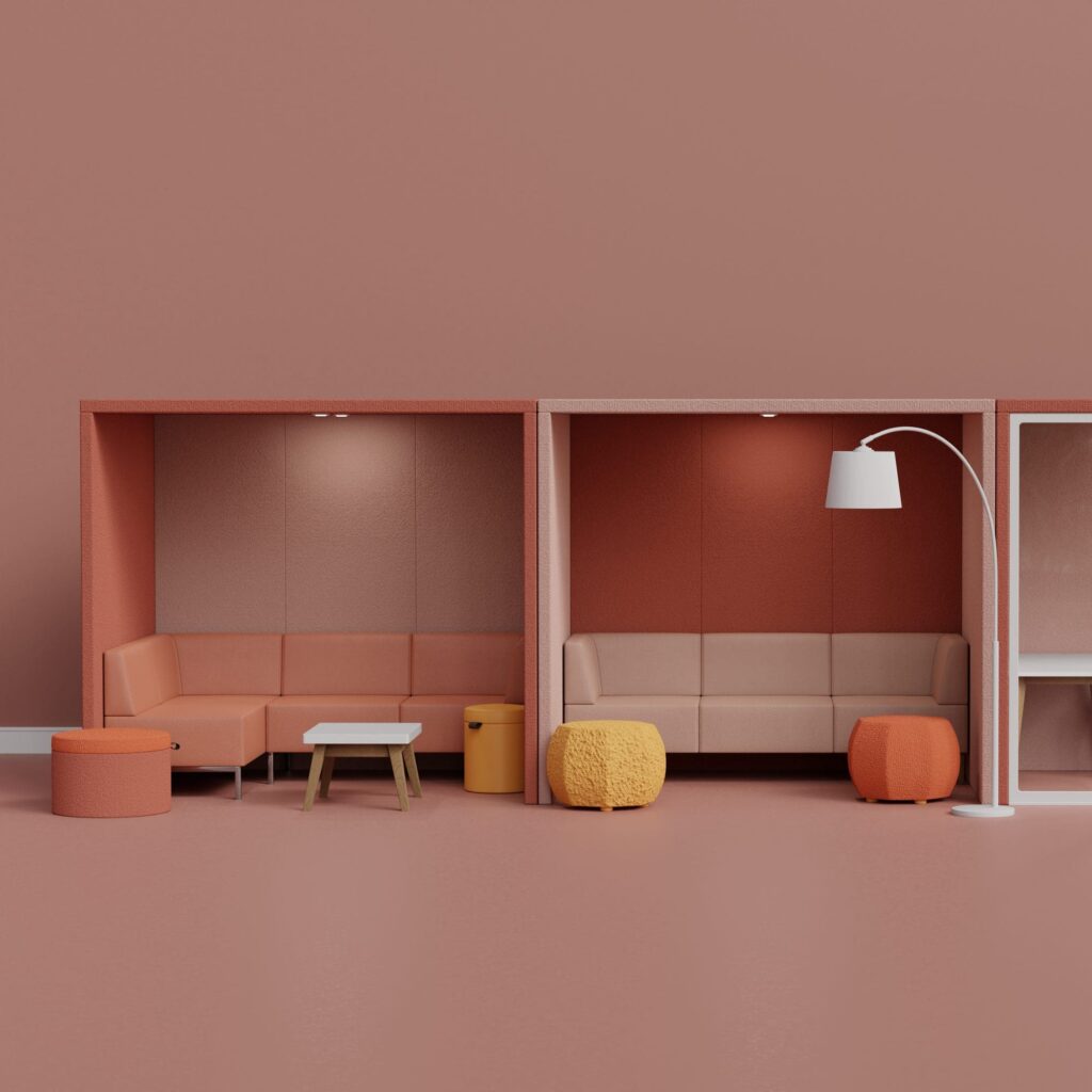 HYDE Open Pod is a versatile, multi-configurable booth that creates a comfortable collaboration or meeting zone within busy open-plan spaces. Its sound-absorbent, fully upholstered interior helps define a dedicated area for focused work or productive discussions without letting noise spill into surrounding areas.