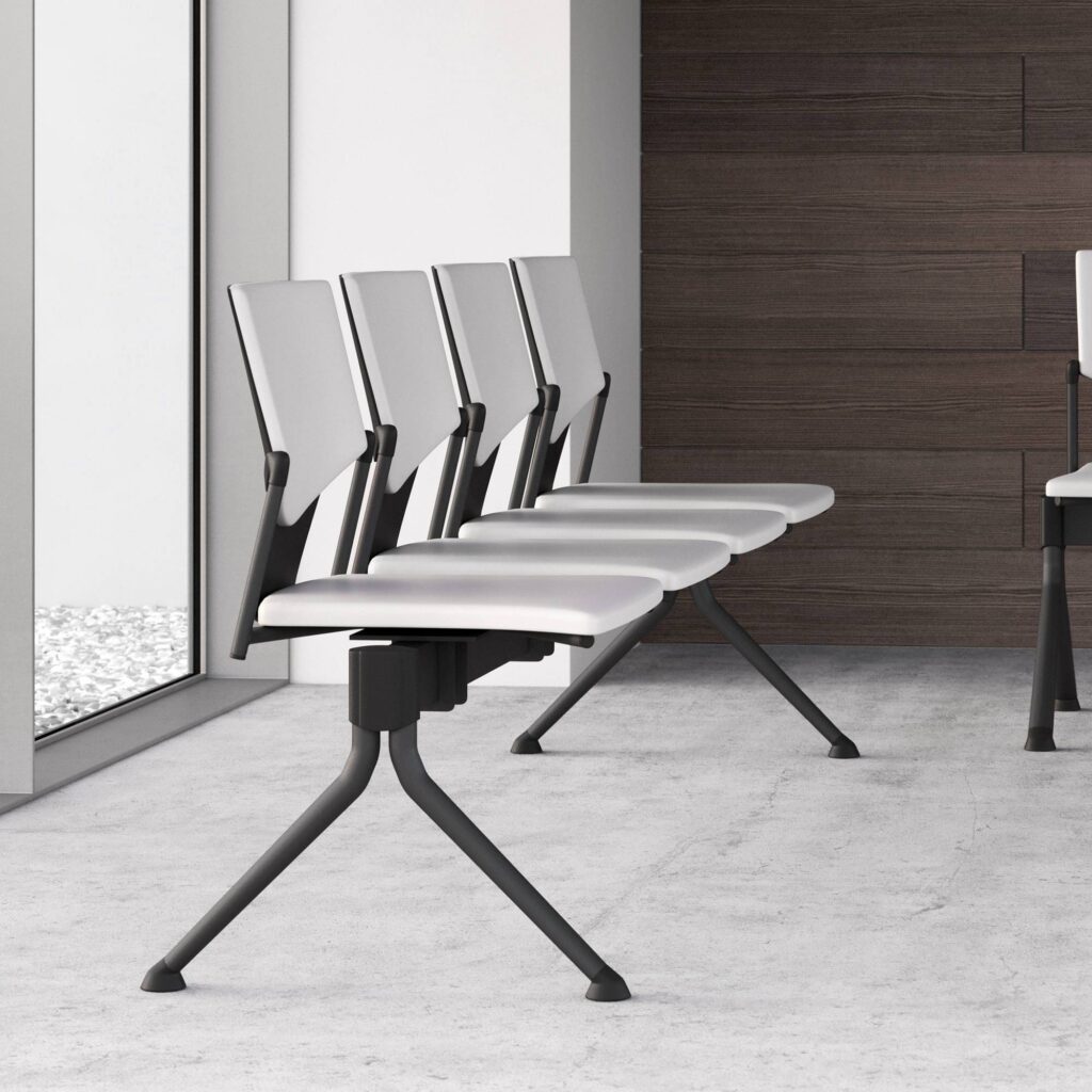 IKON Beam is a modular 2- to 5-seater beam seating system for busy reception and public spaces. With durable plastic seats and backs, four colour options and a black steel frame, configure 2–5 seats with floor-fixed or freestanding options and optional arms or a table swap. Widths 1100–2650mm; depth 590mm; height 830mm; seat height 440mm. Lead time: 4 weeks.
