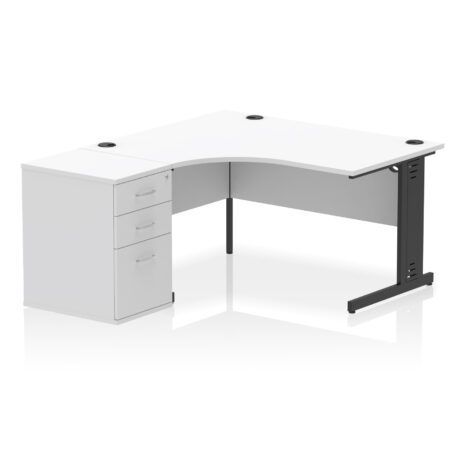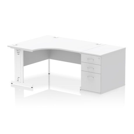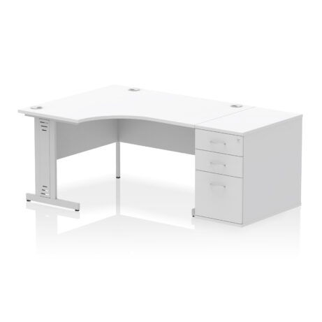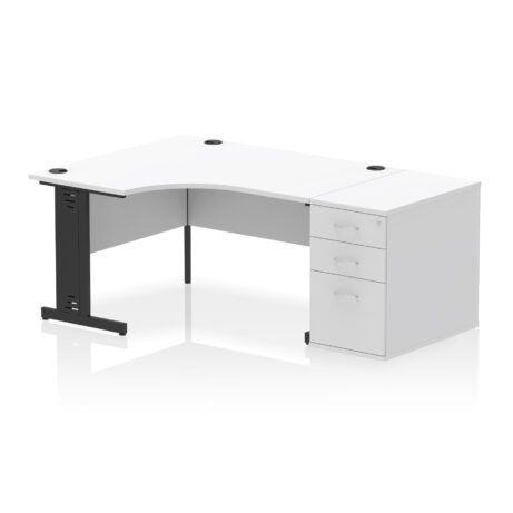 Impulse 1400mm Cable Managed Left Crescent Desk Workstation combines an integrated pedestal with a neat, cable-managed work surface in one compact unit. With a 25mm top, durable melamine finish, and multiple cable ports, it keeps workspaces tidy and ready for daily use in busy offices. Explore it within our Desking solutions or individual desks & workstations for open-plan layouts.