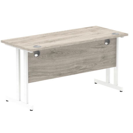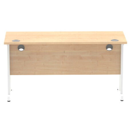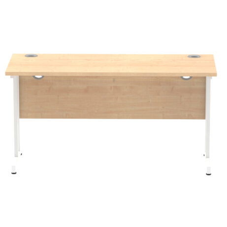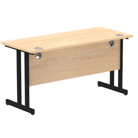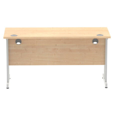 The Impulse 1400mm Slimline Desk with cantilever legs combines durability and value for modern workspaces. A 25mm top with heat-resistant melamine, 2 cable ports and a deep-set 5" modesty panel make it practical for open-plan offices and shared spaces. It supports up to 135kg and features height-adjustable feet with steel-to-steel fixings for reliable, long-lasting performance.