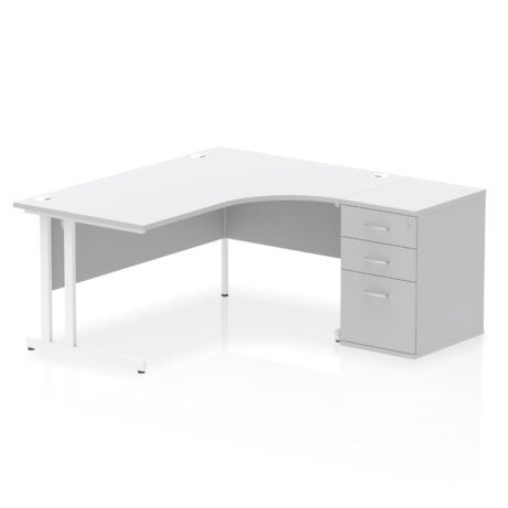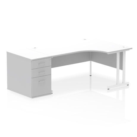 Impulse 1600mm Cantilever Right Crescent Desk Workstation combines a robust 25mm desktop with integrated storage and thoughtful cable management in a single, space-saving solution. The cantilever frame provides stable support, while a right-hand pedestal keeps essentials close at hand without clutter. Ideal for Desking in contemporary offices and compatible with Individual Desks & Workstations.