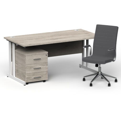 Impulse 1600mm Cantilever Straight Desk With Mobile Pedestal and Ezra Grey Executive Chair