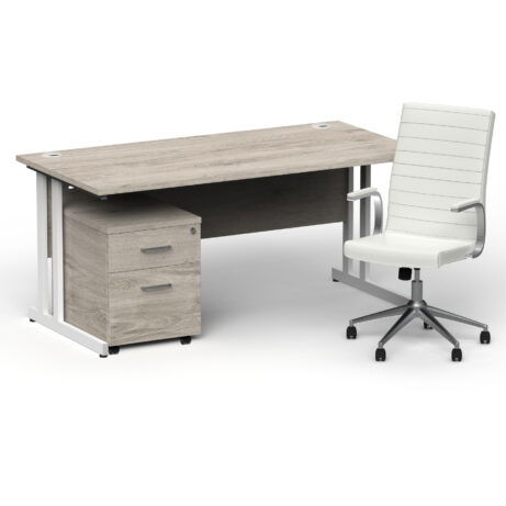 Impulse 1600mm Cantilever Straight Desk With Mobile Pedestal and Ezra White Executive Chair