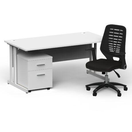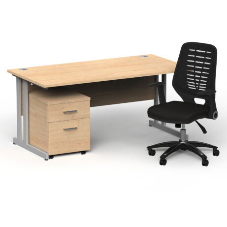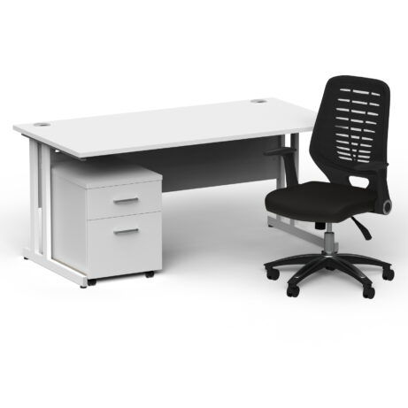 High‑value workstation pairing a 1600mm cantilever desk with a mobile pedestal and Relay chair. It combines a 25mm top with a melamine finish, lockable drawers, and mobile under‑desk storage for tidy spaces. The Relay chair delivers all‑day comfort with an adjustable tilt and 110kg gas lift. Ideal for Office Desking and Individual Desks & Workstations.