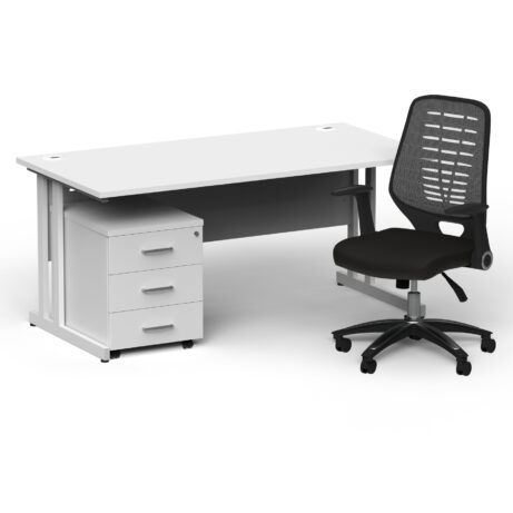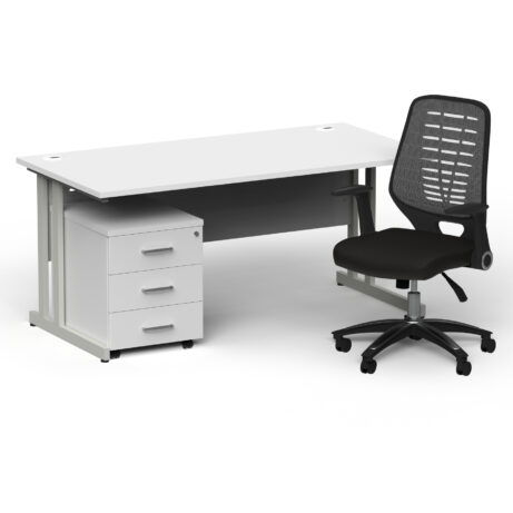 The Impulse 1600mm Cantilever Straight Desk with Mobile Pedestal and Relay Silver Back Operator Chair offers a complete, value-led workstation: a 1600mm 25mm top, integrated mobile pedestal with lockable drawers, and a breathable Relay chair with tilt and gas lift. Built for everyday use, it provides durable storage and flexible workspace in one package.