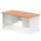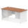 For stability and easy setup on uneven floors, height-adjustable feet are included, and robust steel-to-steel fixings ensure lasting performance. The desk uses matching wood panel end legs to create a cohesive look across your workspace.