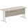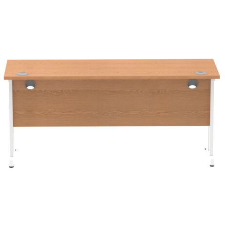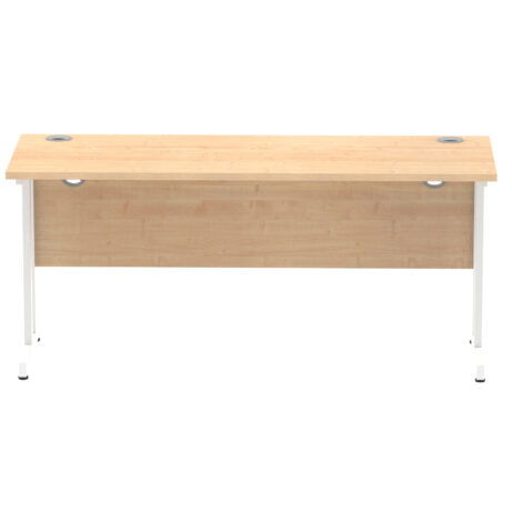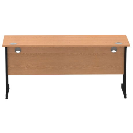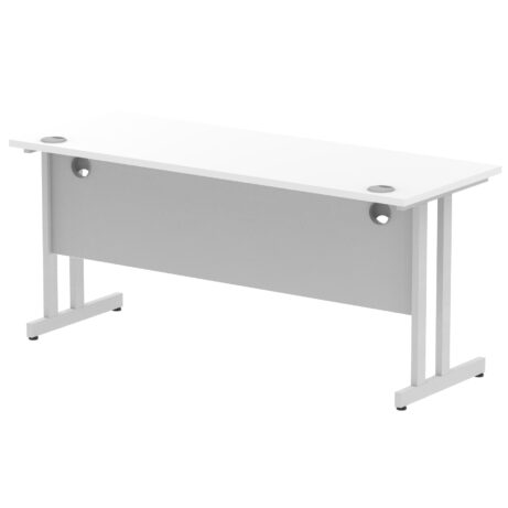 Impulse 1600mm Slimline Desk Cantilever Leg offers outstanding value for contract desks without compromising on practicality. Featuring a 25mm top with a heat-resistant melamine finish, an 18mm modesty panel and 2mm ABS edging, it pairs silver-coated cantilever legs with two cable ports for tidy wiring. Height-adjustable feet and a 135kg weight capacity ensure reliable everyday use. The deep-set 5" modesty panel supports most screen clamp fittings, making it a straightforward, durable choice for modern workspaces.